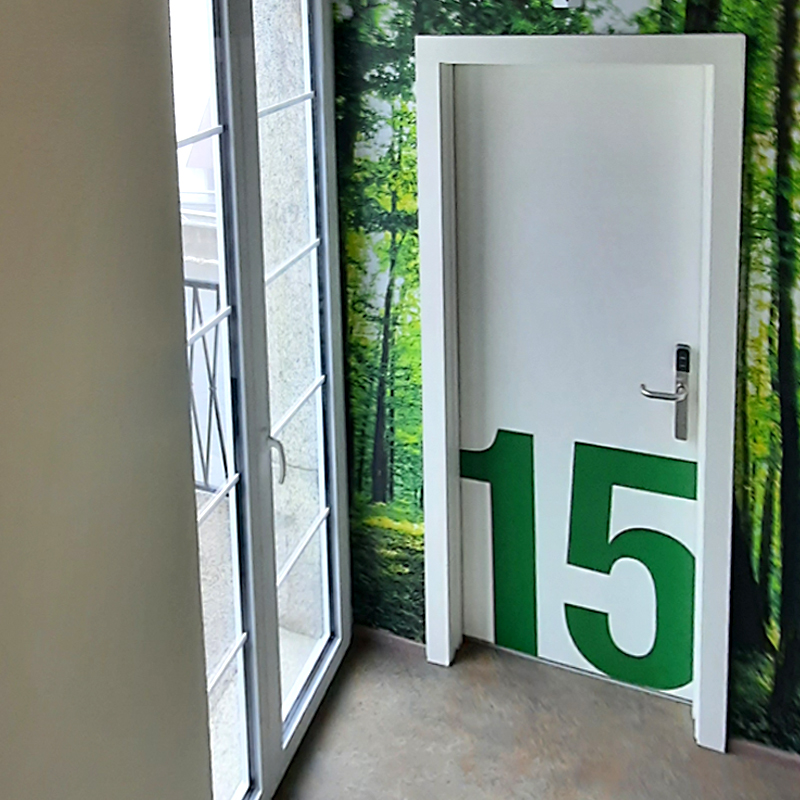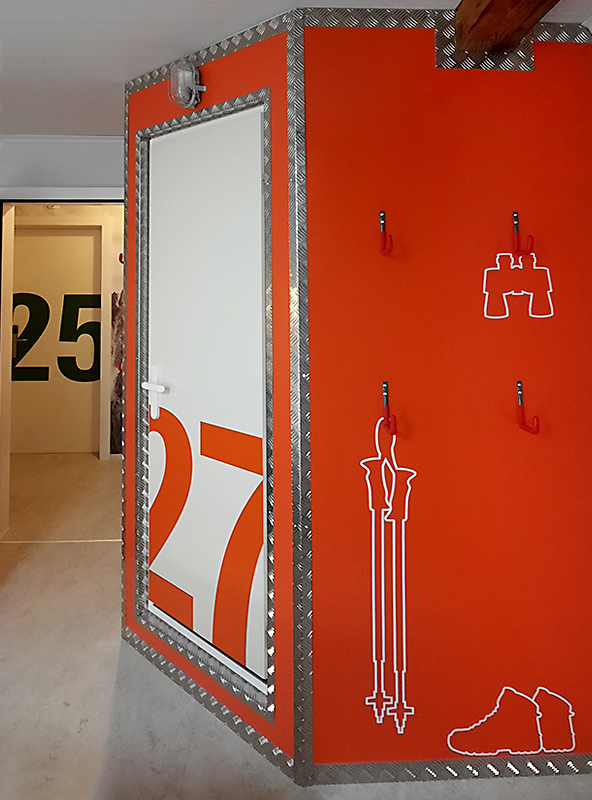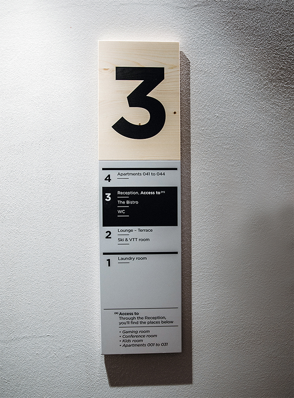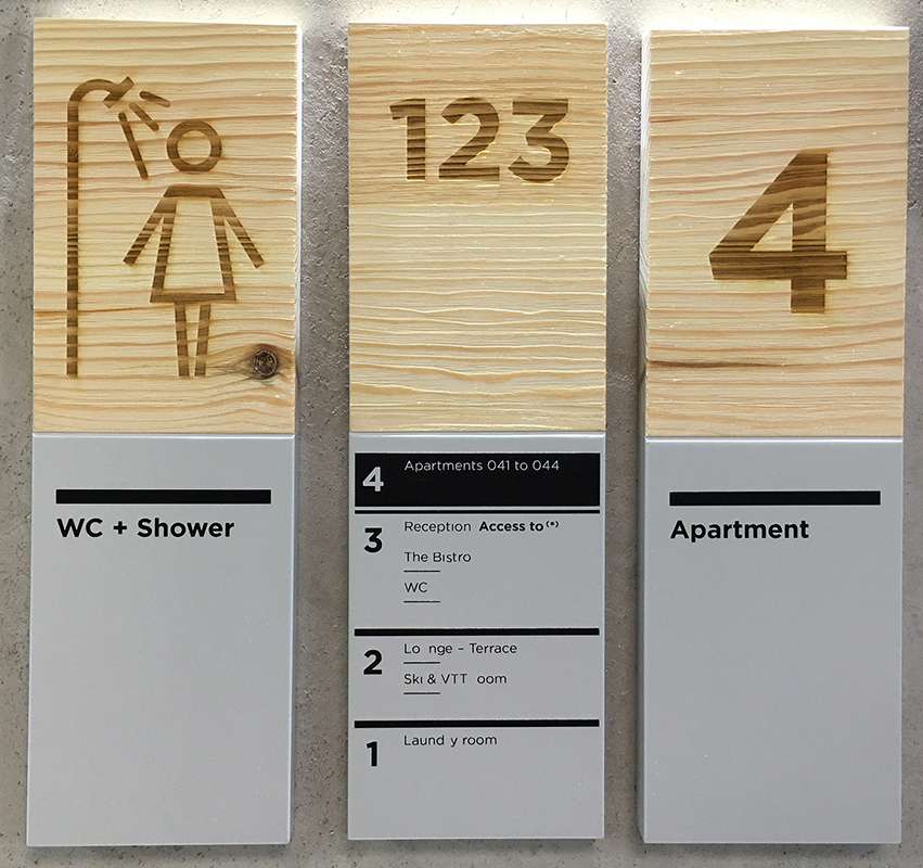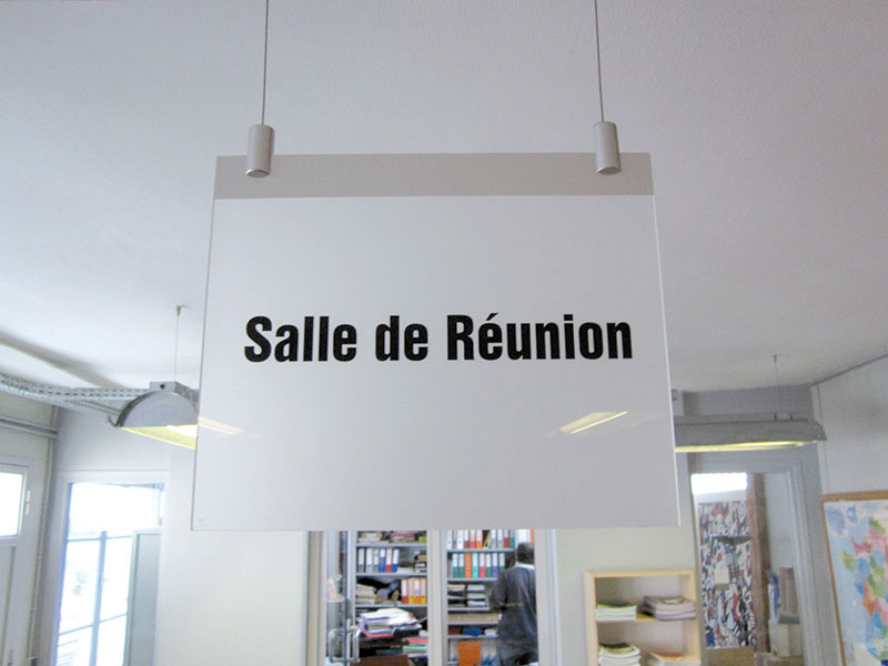 Optez pour des panneaux graphiques avec pictos pour communiquer le plus simplement possible la fonction de vos locaux auprès des visiteurs.
